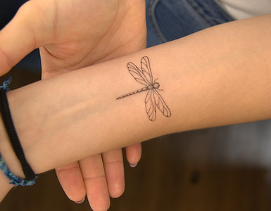 Folgende Motive habe ich mit der dünnsten Tätowiernadel (single needle) gestochen. Das verheilte Endergebnis erscheint grau - nicht tief schwarz und sieht daher wie eine dezente Bleistiftzeichnung auf der Haut aus.